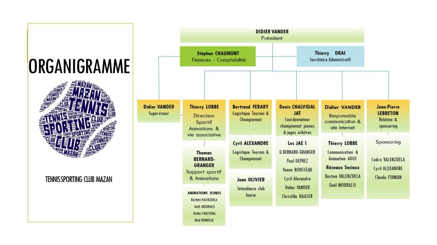 Secrétaire du bureau. C'est lui qui rédige les comptes rendus des réunions suivant l'ordre du jour. Il a aussi une double casquette, car il s'occupe de l'intendance au niveau des victuailles et boissons pour les jours de rencontres sportives et/ou festives du club.